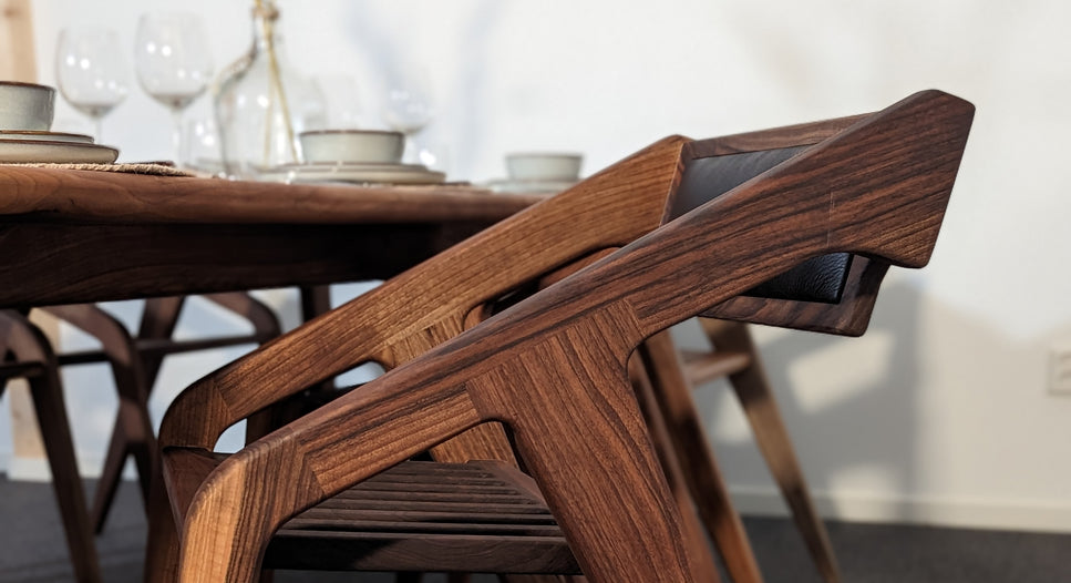 Möbler i trä med skandinavisk design framtagna i samarbete med lokala hantverkare och nordiska designers.